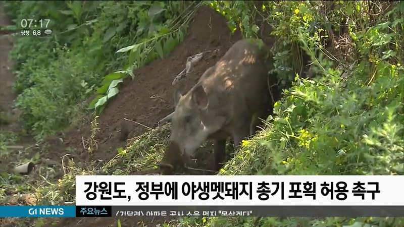 강원도는 DMZ 인근과 민통선 지역의 야생멧돼지 대부분이 아프리카돼지열병에 감염됐을 가능성이 높다며, 환경부와 농식품부에 총기 포획을 허용해줄 것을 촉구했습니다.
