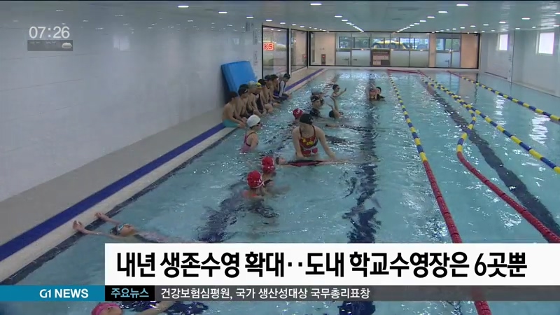 내년부터 초등학교 전 학년에 생존 수영 교육이 확대되지만, 학생들이 활용할 수 있는 도내 학교수영장은 턱없이 부족한 것으로 나타났습니다.