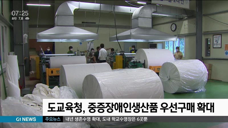 도교육청은 산하기관과 학교에서 중증장애인 생산품을 우선 구매하도록 권장했지만, 그동안 실제 구매 실적이 법정구매 비율인 1/100 이상에 미치지 못했다고 밝혔습니다.