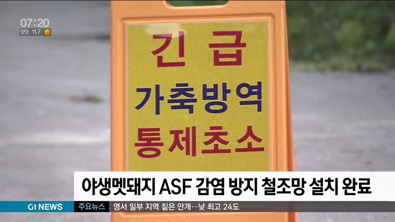 정부는 어제(20일) 정부세종청사에 열린 상황점검회의에서, 야생멧돼지의 아프리카 돼지열병 추가 감염을 막기 위해 철원을 비롯한 접경지역 일대에 임시 철조망 설치를 완료했다고 밝혔습니다.