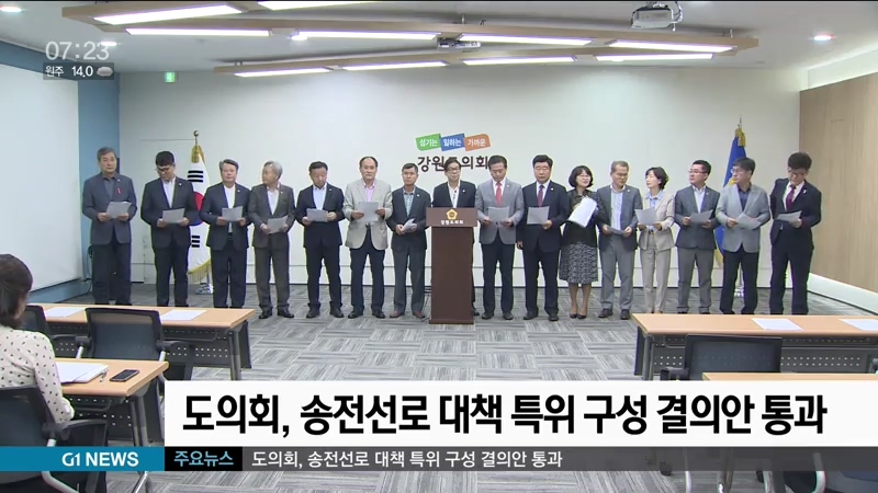 강원도의회는 제285회 임시회 본회의에서 신도현의원이 대표 발의한 '송전선로 대책 특별위원회 구성 결의안'을 통과시켰습니다.