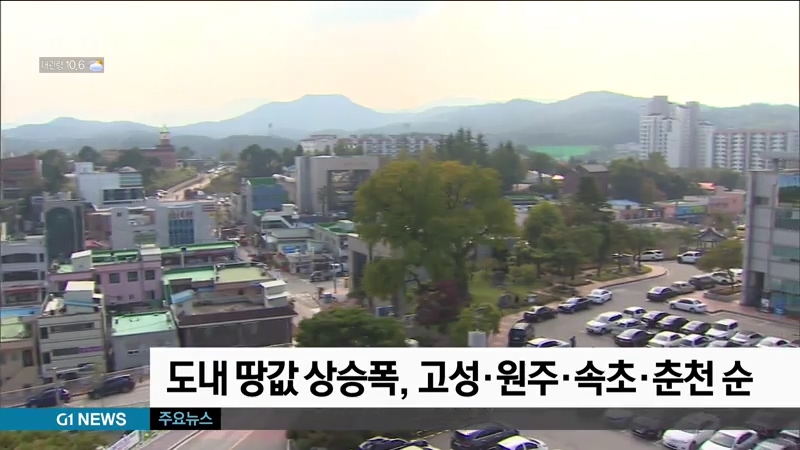 도내 땅값 상승폭, 고성.원주.속초.춘천 순