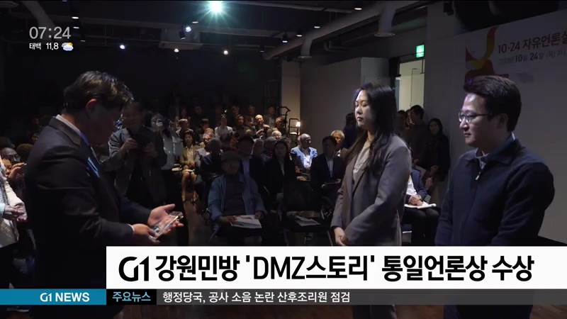 한국기자협회와 한국PD연합회, 전국언론노동조합은 어제 서울 뉴스타파 함께센터에서 제25회 통일언론상 시상식을 열고, G1 김태정, 조민경 PD가 연출한 'DMZ 스토리'를 통일언론상 특별상에 선정해 시상했습니다.