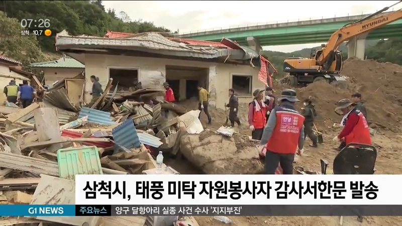 삼척시가 태풍 '미탁'의 피해 복구를 도운 자원봉사자들에게 감사 서한문을 발송합니다.