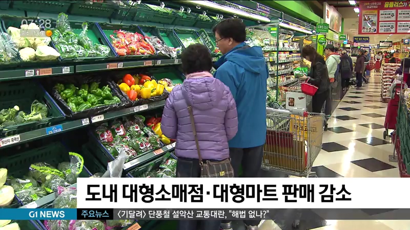 지난 9월 도내 대형소매점과 대형마트의 판매가 지난해 같은 기간과 비교해 모두 감소한 것으로 나타났습니다.