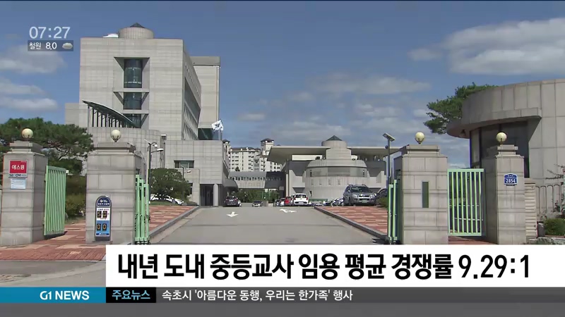 내년 도내 중등교사 임용 평균 경쟁률 9.29:1