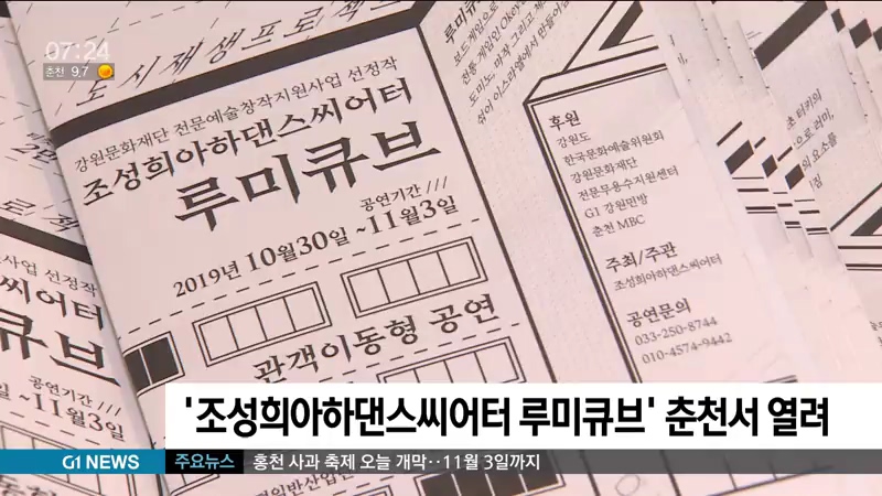 도시재생프로젝트의 일환으로 마련된 현대무용 공연, '조성희아하댄스씨어터의 루미큐브'가 오는 3일까지 춘천 후평일반산업단지 내 옛 조은담배 건물에서 진행됩니다.