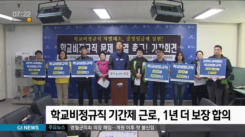 강원도교육청과 학교비정규직연대회의가 학교 청소원과 당직 전담원 등 특수 운영직군의 정년 후 재임용 관련 협상을 재개해 최종 합의했습니다.