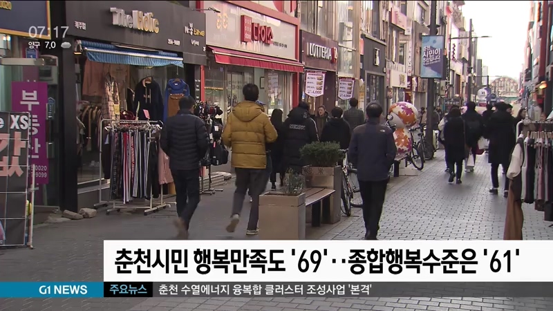 춘천시가 실시한 설문조사 결과, 시민 행복 만족도가 100점 만점에 69점으로 나타났습니다.