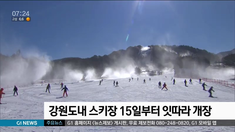 15일 하이원 리조트 개장을 시작으로, 용평 리조트와 휘닉스 스노우 파크는 17일에, 홍천 비발디파크와 횡성 웰리힐리파크는 22일에 차례로 문을 엽니다.
