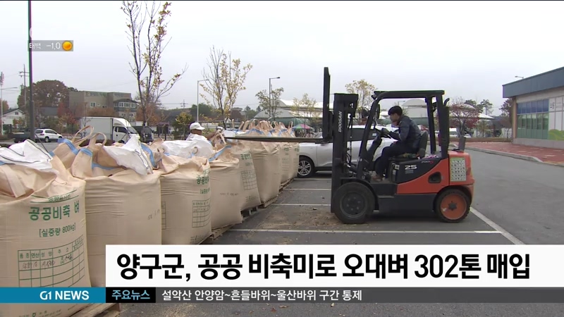 매입 품종은 오대벼 단일 품종으로 물량은 산물벼 238t과 건조벼 64t 등 모두 302t이며, 산물벼는 이달 16일까지 건조벼는 올 연말까지 매입이 추진됩니다.