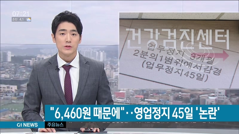 건강검진센터를 운영하는 춘천의 한 의원이 한달 보름의 영업정지를 통보 받았습니다.