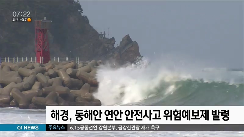 동해와 속초 해양경찰서는 내일(15일)까지 연안 안전사고 위험예보제 '관심' 단계를 발령한다고 밝혔습니다.