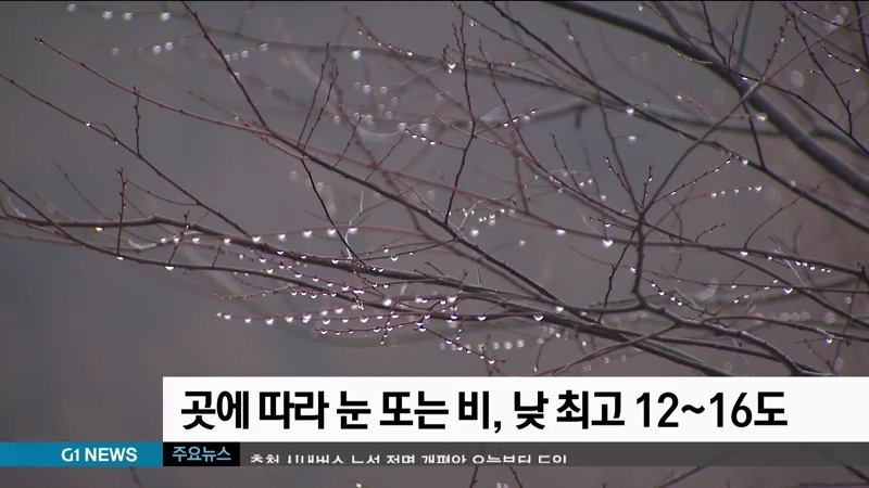 곳에따라 눈 또는 비, 낮 최고 12~16도