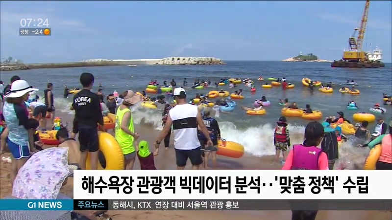 강원도 환동해본부는 내년부터 2022년까지 도내 해수욕장의 피서객 수와 성별, 나이, 24시간 이후 이동지 등을 빅데이터로 분석해 해수욕장 별로 피서객 성향을 파악한 뒤 맞춤형 관광 정책을 세우기로 했습니다.