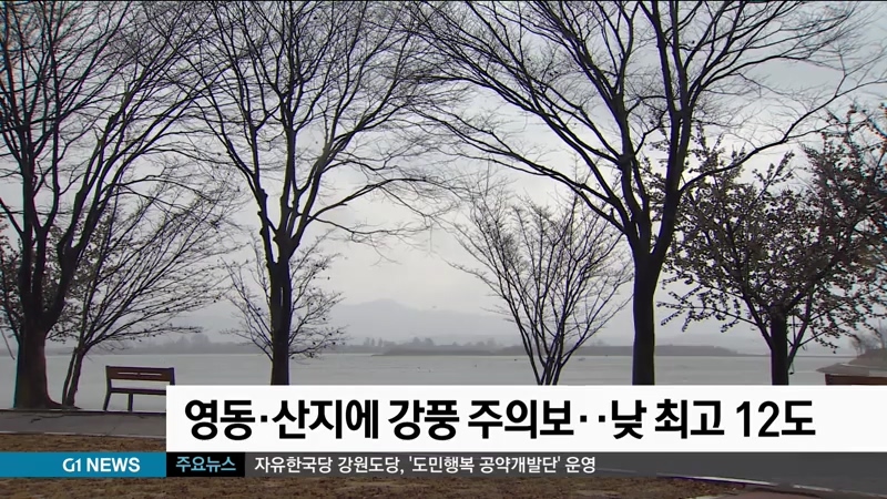 영동·산지에 강풍 주의보..낮 최고 12도
