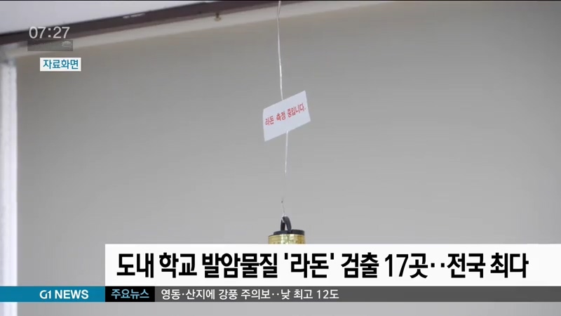 도내 학교 발암물질 '라돈' 검출 17곳..전국 최다