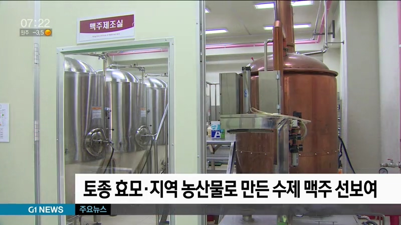 이번에 개발한 수제 맥주는 오륜쌀로 만든 허니에일과 홍천 사과 농축액이 함유된 애플에일 등 페일에일 2종으로 다음 달 지역 업체를 통한 생산 후 출시될 계획입니다.