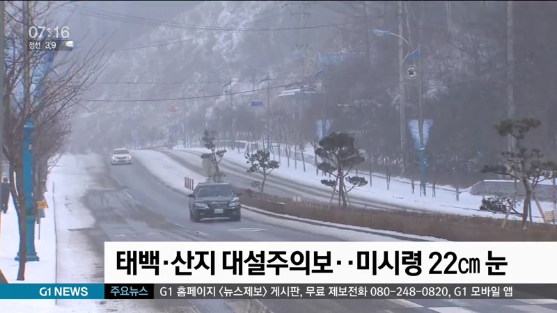 강원 산지와 태백에 대설 주의보가 내려진 가운데, 미시령에는 밤사이 22cm의 눈이 내렸습니다.