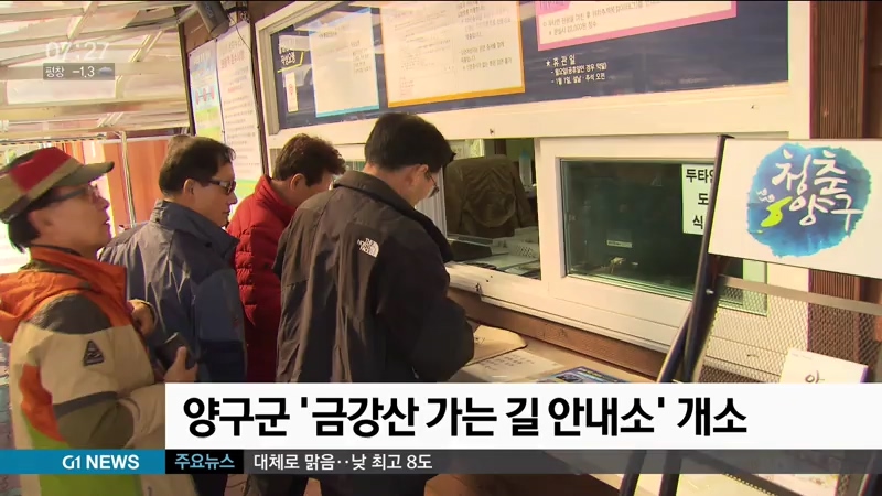 양구군은 두타연을 방문하는 관광객이 연간 8만여 명에 달하지만 이목정 안내소의 시설이 협소해 꾸준히 민원이 제기돼 왔다며, 시설을 신축해 '금강산 가는 길 안내소'의 문을 연다고 밝혔습니다.