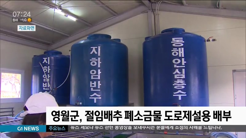 영월군은 지난해 150곳의 절임배추 생산농가에서 폐소금물 360톤을 수거해, 올 여름동안 간이 육지염전시설에서 재생 소금 30톤을 생산했다고 밝혔습니다.