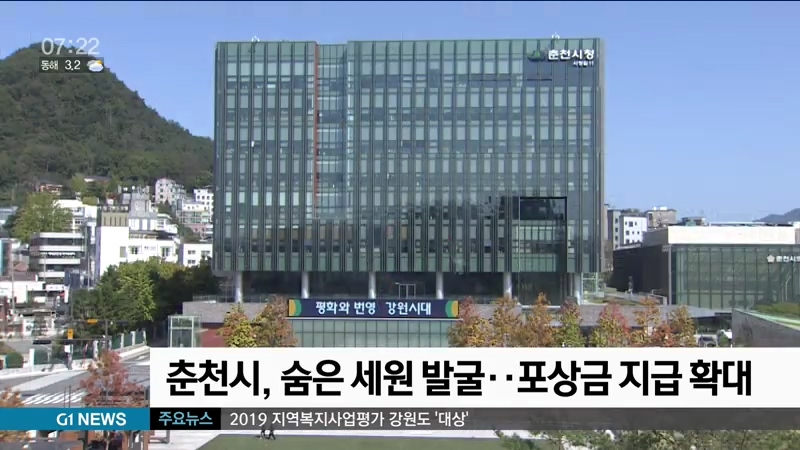 춘천시는 최근 세입 징수포상금 지급 조례를 개정하고, 숨은 세원을 찾아낼 수 있도록 도움을 준 시민에게 포상금을 지급하는 조항을 신설하는 등 대상을 확대했다고 밝혔습니다.
