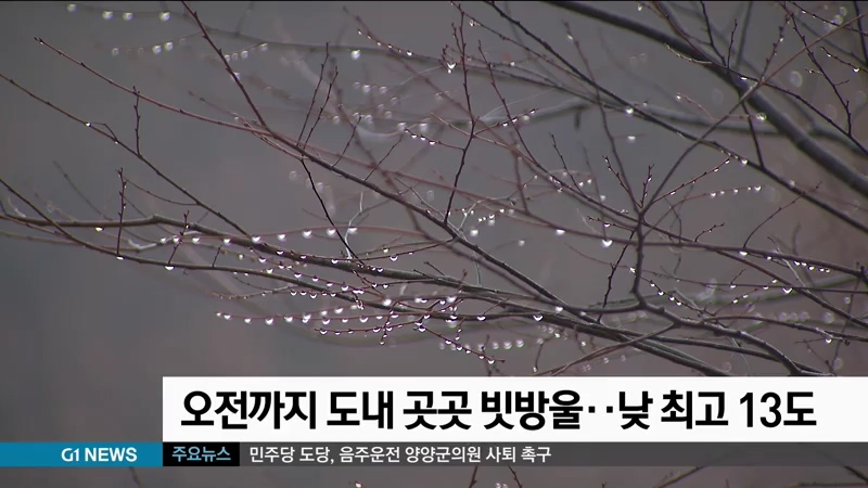 오전까지 도내 곳곳 빗방울..낮 최고 13도