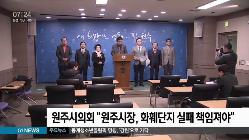 원주 화훼관광단지 지구 지정이 취소된 가운데, 원주시의회 자유한국당 소속 의원들은 어제 기자회견을 열고, 원창묵 시장이 사업 실패에 책임을 져야한다고 주장했습니다.