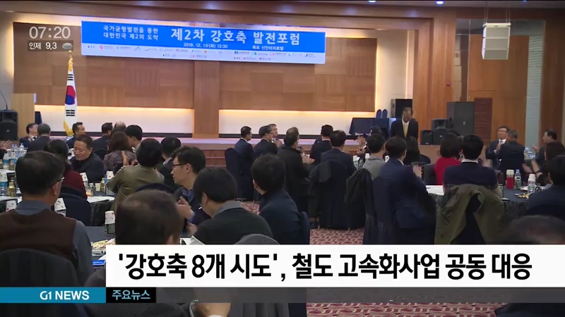 지난 9월 출범한 '강호축 발전포럼'은 강호축 개발을 위해 8개 시·도 간 협력 체계를 구축하고 체계적이고 지속적인 추진동력을 확보하기 위해 강원도와 충북, 충남, 전북, 전남, 광주, 대전, 세종시 등이 참여하고 있습니다.