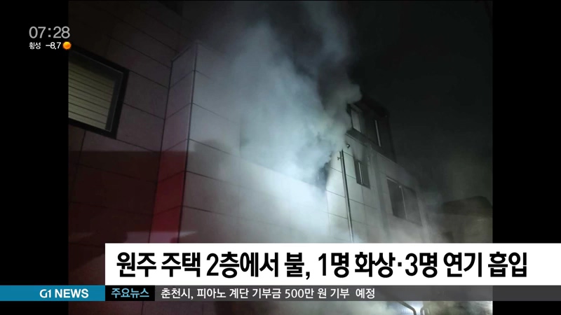원주 주택 2층에서 불, 1명 화상·3명 연기 흡입