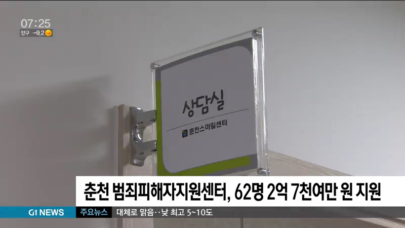 춘천지검과 춘천지역 범죄피해자지원센터는 올해 범죄 피해자 62명에게 모두 2억7천여만 원을 지원했다고 밝혔습니다.