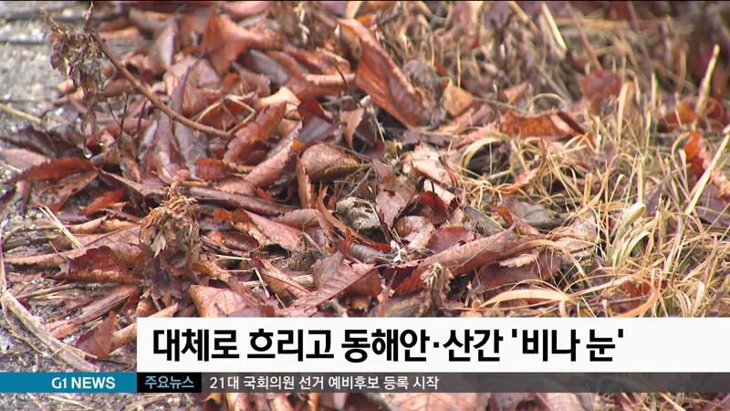오늘 강원지역은 대체로 흐리고 동해안과 산간지역엔 비나 눈이 오는 곳이 있겠습니다.