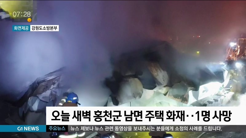 오늘 새벽 홍천군 남면 주택 화재..1명 사망