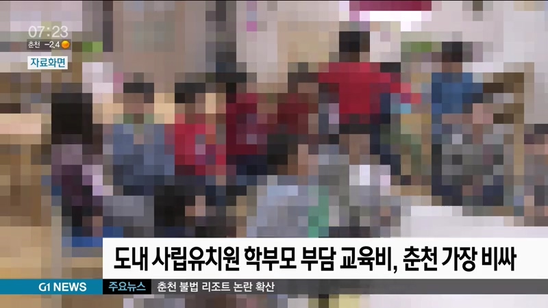 도내 사립유치원 가운데 학부모 부담 교육비이 가장 비싼 곳은 춘천지역인 것으로 나타났습니다.