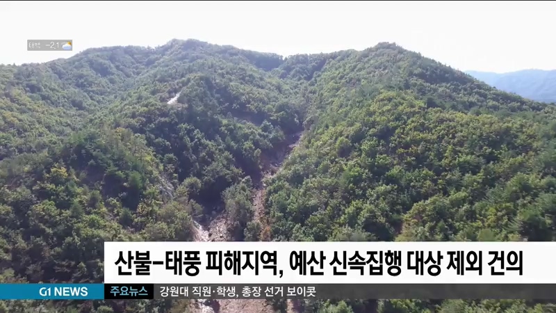 강릉시과 동해시, 삼척시, 고성군은 산불과 태풍으로 인한 재난복구비가 적게는 500억 원대에서 많게는 천억 원에 가까운 상황에서 예산 신속집행 대상에도 포함돼 이중고를 겪고 있다고 밝혔습니다.