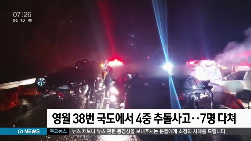 영월 38번 국도에서 4중 추돌사고..7명 다쳐
