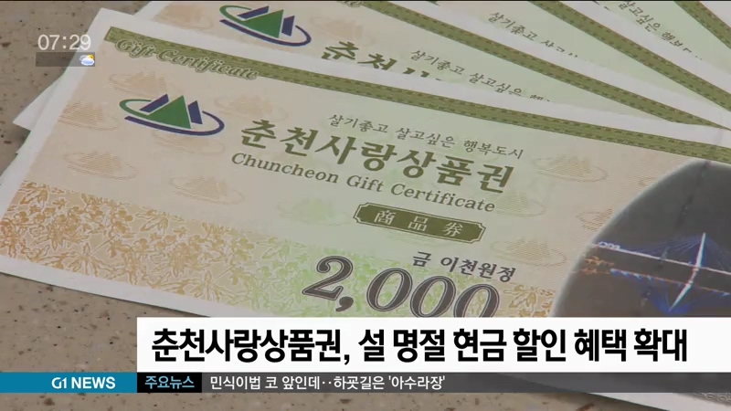 춘천시는 다음달 2일부터 31일까지 5주 동안 춘천사랑상품권에 적용되는 현금 구매 할인율을 현재 5%에서 10%로 올린다고 밝혔습니다.