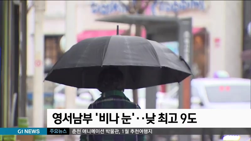 오늘 강원지역은 대체로 흐리고 영서남부지역에 비나 눈이 오는 곳이 있겠습니다.