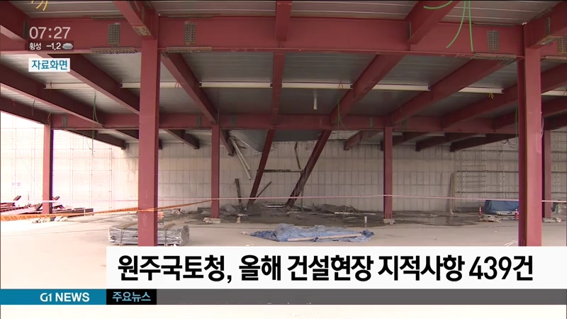 원주지방국토관리청은 지난 2월부터 도내 479개 건설현장을 대상으로 안전사고 방지 대책과 이행 관리상황을 집중 점검해, 439건의 지적사항을 적발했습니다.