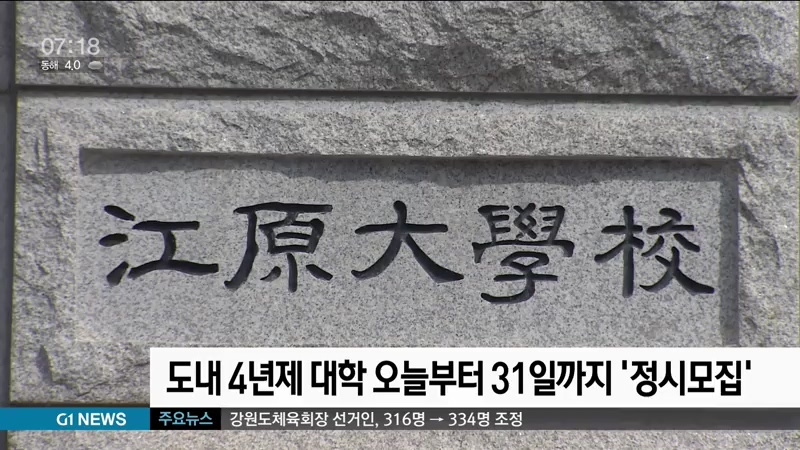 강원도내 4년제 대학이 오늘(26일)부터 오는 31일까지 '2020학년도 정시모집'에 들어갑니다.