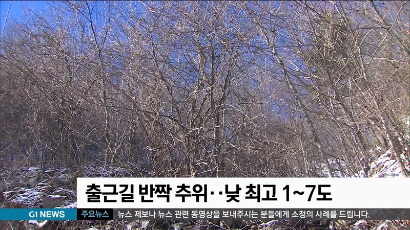 낮 최고 기온은 영서지역이 영하 1도에서 영상 3도, 영동지역은 5도에서 7도의 분포로 어제와 비슷하거나 조금 낮겠습니다.