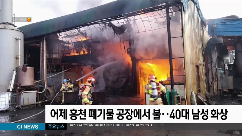 홍천 폐기물 공장에서 화재, 40대 남성 화상