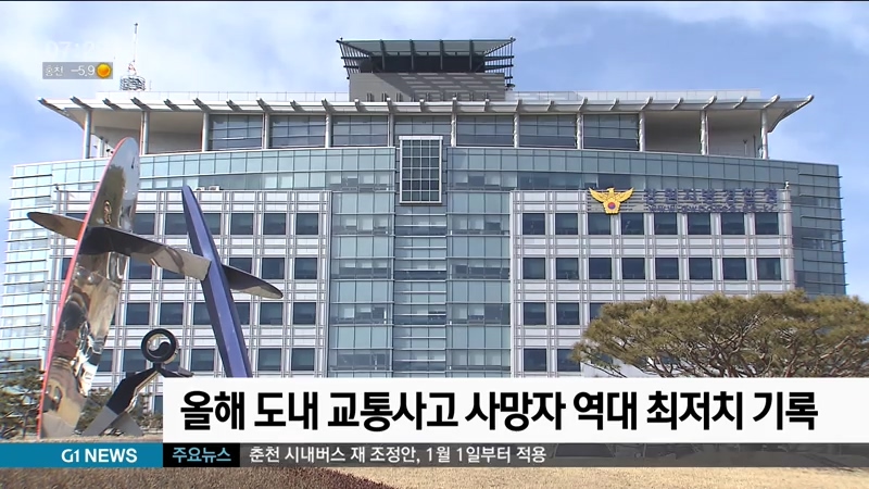 강원지방경찰청은 올들어 12월 현재까지 도내 교통사고 사망자 수가 전년 같은 기간 대비 9% 감소한 179명으로 역대 최저치를 기록했다고 밝혔습니다.