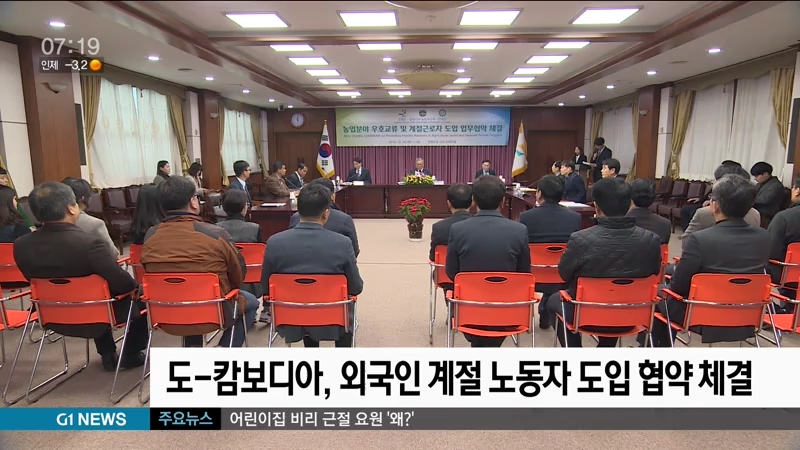 강원도와 캄보디아 농림수산부는 강원도청에서 농업 분야 우호협력과 외국인 계절 노동자 도입을 위한 우호교류 협약을 체결했습니다.