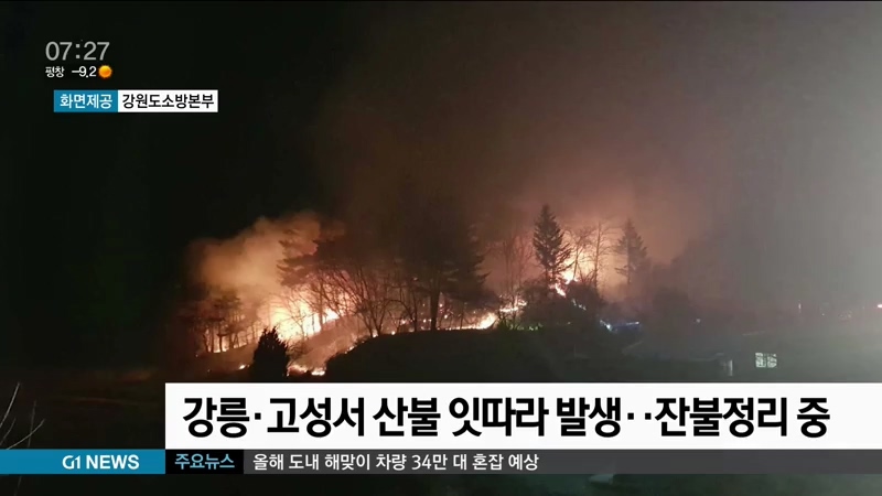 강릉·고성서 산불 잇따라 발생..잔불정리 중