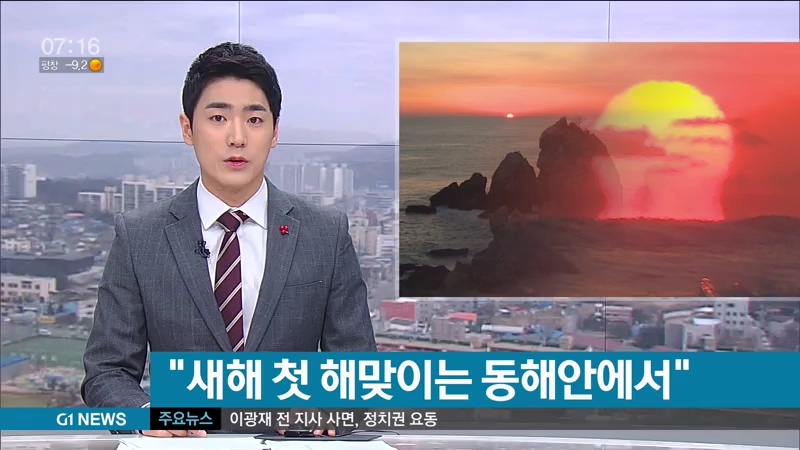 "이곳 동해안 해변은 물론 고성 통일전망대와 태백산 천제단 등 도내 곳곳에서도 다양한 해맞이 행사가 펼쳐집니다."