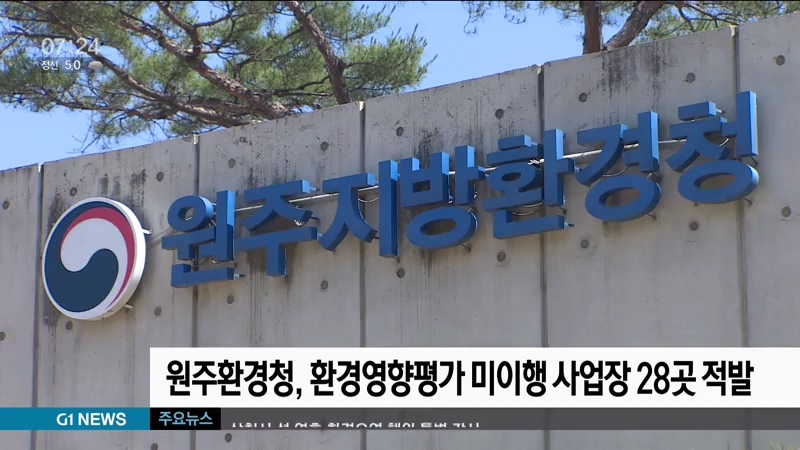 원주지방환경청은 환경영향평가 협의사업장 88곳의 이행실태를 점검해, 협의내용을 이행하지 않은 사업장 28곳을 적발했습니다.