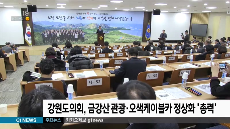 강원도의회가 올 한해 금강산 관광 재개와 오색 케이블카 정상 추진 등 강원도 현안 해결을 위해 힘을 모으기로 했습니다.