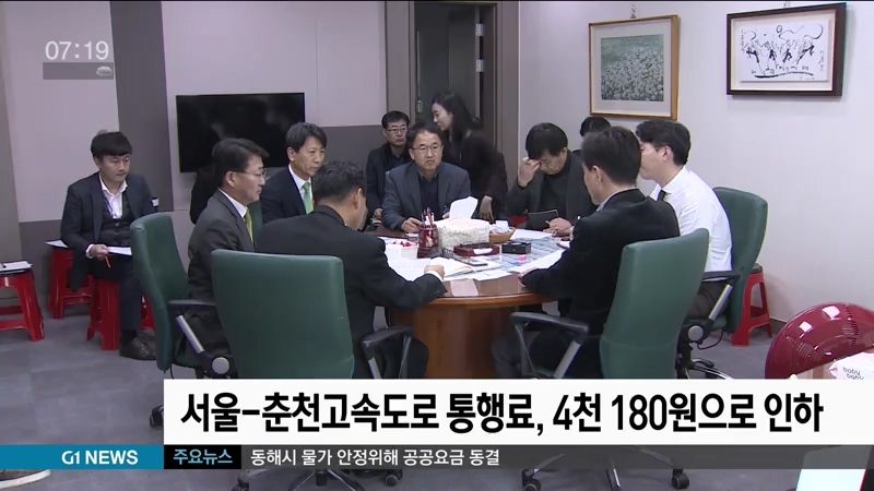 자유한국당 김진태 의원은 어제, 국토부 관계자와의 간담회 결과, 국토부 측이 서울-춘천고속도로의 통행료를 오는 12월에 현재 5천 7백원에서 4천 180원으로 인하하기로 했다고 밝혔습니다.