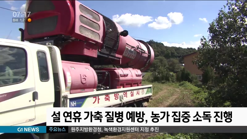 농협 강원지역본부는 농.축협 공동방제단을 꾸려, 오는 23일부터 6일간 도내 가금.양돈 농가와 도축장, 공판장 등 축산시설에 집중 소독활동을 지원합니다.
